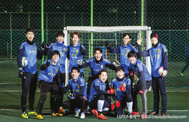 자, 이제 본격적으로 LG디스플레이 사내 풋살 IG <FPR United>의 이야기를 들어보겠습니다. LG디스플레이가 FPR 3D로 3D 시장에서 강한 돌풍을 일으켰던 2011년에 창단해 이런 이름이 붙게 되었다고 하는데요. 어느새 6년이 흘렀지만, 작년 한 해에만 14명이 신규 가입할 정도로 <FPR United>는 아직도 활발하게 활동 중이라고 합니다.