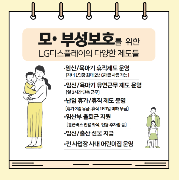 이렇듯 일과 가정이 양립할 수 있는 유연한 근무제도가 정착되어 있는 LG디스플레이는 앞으로도 성한 님을 비롯한 모든 구성원들이 회사와 가정에서 모두 행복할 수 있도록 다양한 제도를 통해 응원하겠습니다!