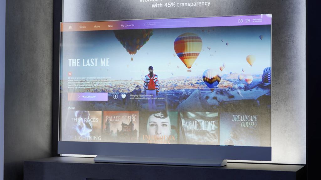 LG디스플레이는 세계 최초로 4K 해상도의 77” 초대형 투명 OLED를 구현하며 투명 디스플레이 기술의 새로운 지평을 열고 있습니다. 기존의 투명 디스플레이와 달리 OLED 기반으로 구현된 이 제품은 더욱 선명하고 풍부한 화질을 제공하며 77’’ 4K 투명 OLED TV로 제품화 된 바 있습니다. 투명 OLED는 사이니지, Information 디스플레이 등 다양한 분야에 적용할 수 있는 확장성이 높아, 사용자에게 혁신적인 시각 경험과 공간 활용의 가능성을 동시에 제시합니다.