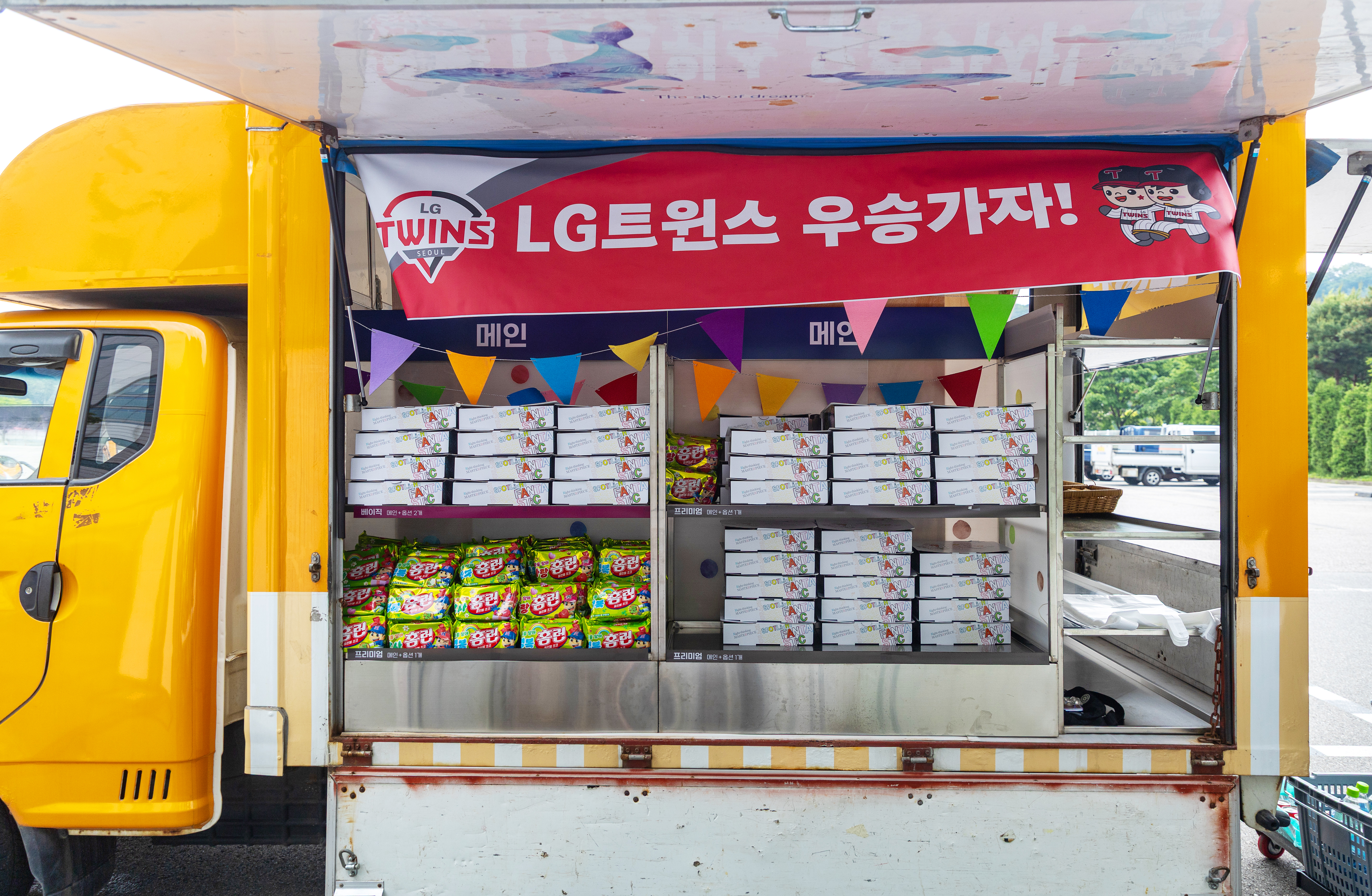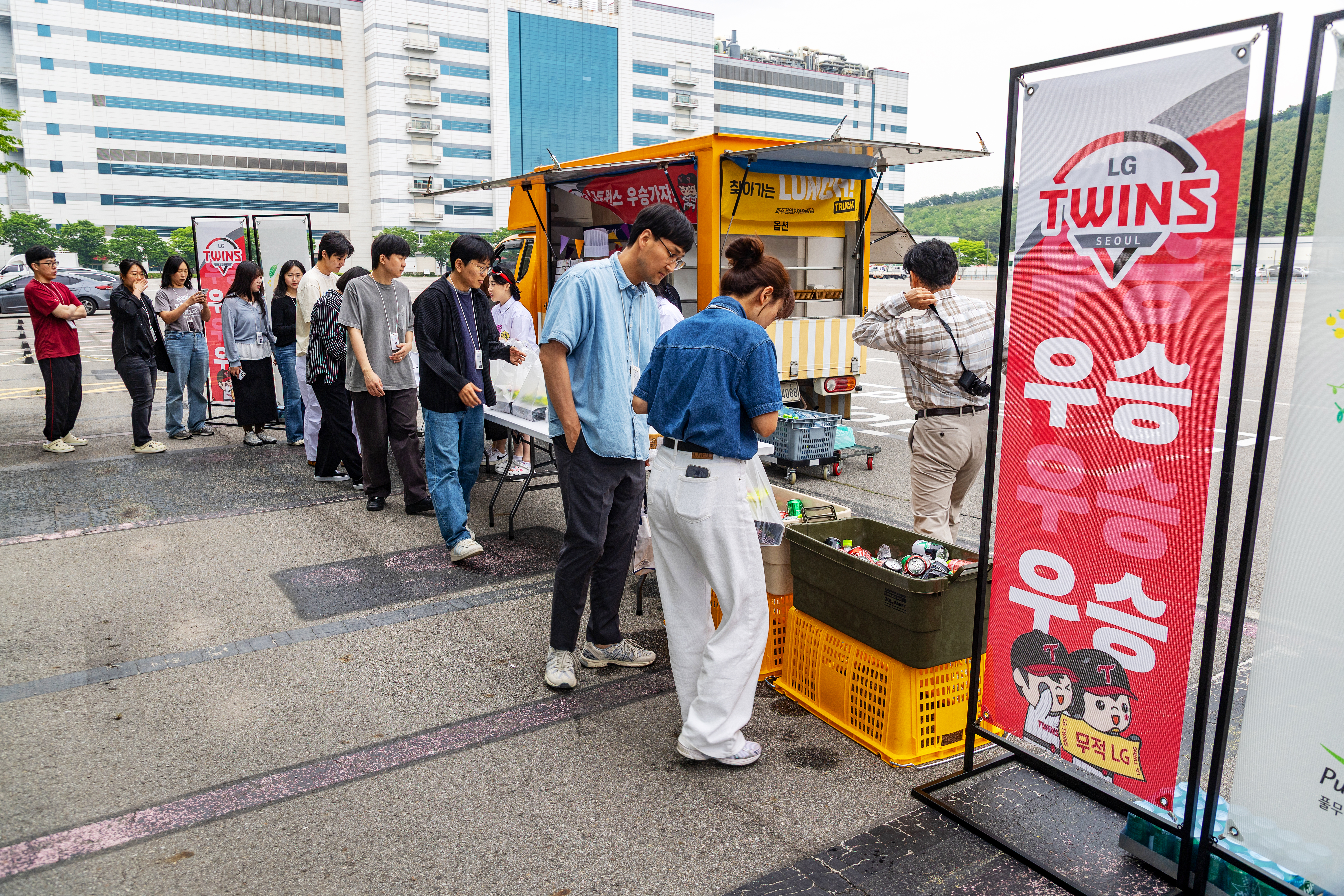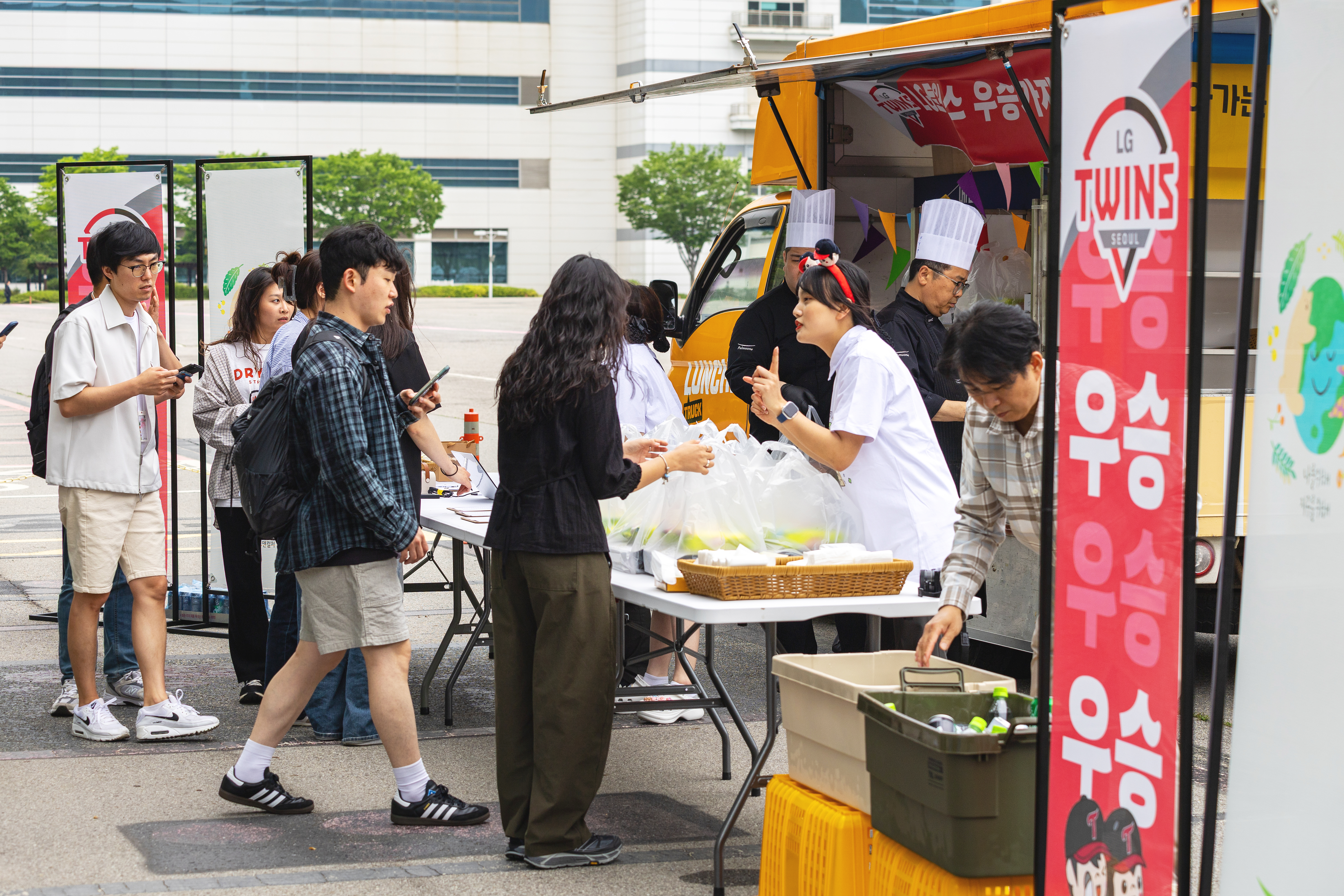 파주 사업장의 피크닉 데이는 더욱 파이팅 넘치는 모습이었습니다. 최근 프로야구 리그에서 한창 활약 중인 LG트윈스를 응원하고자 하는 마음을 담아 푸드트럭을 준비한 것인데요. 야구장에서 즐기는 인기 간식인 닭강정과 핫도그 등 간편하면서도 든든한 먹거리와 함께 구성원들은 돗자리를 펴고 잔디밭 위에 둘러앉아 도란도란 이야기를 나누며 한껏 여유를 즐겼습니다.