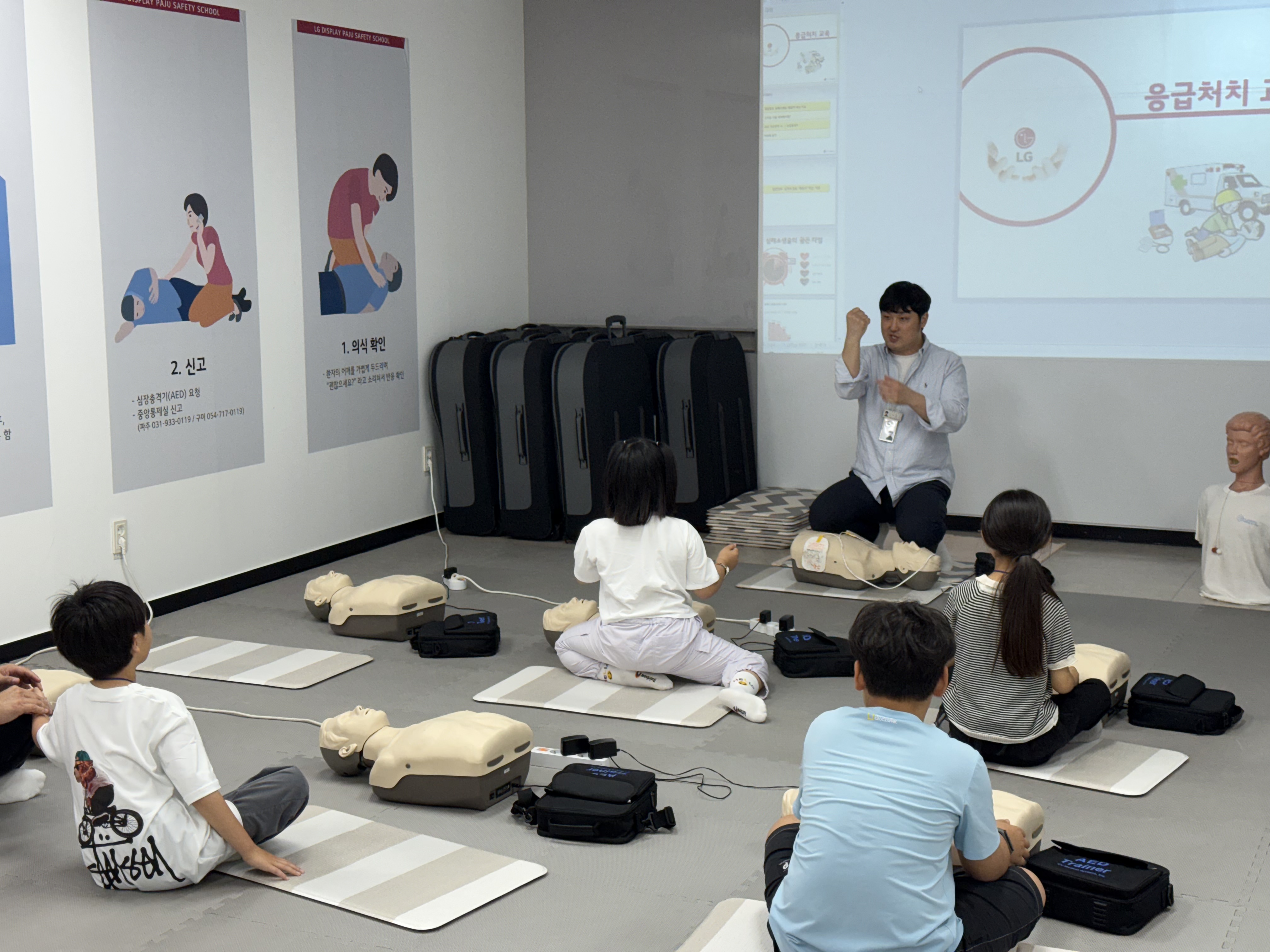 아이들은 단순히 설명을 듣는 데 그치지 않고, 마네킹을 활용해 직접 심폐소생술을 해보며 실전처럼 익힐 수 있었는데요, 진지한 자세로 교육에 임하는 모습에서 스스로 생명을 지키고 도울 수 있다는 책임감도 함께 자라나고 있음을 느낄 수 있었습니다.