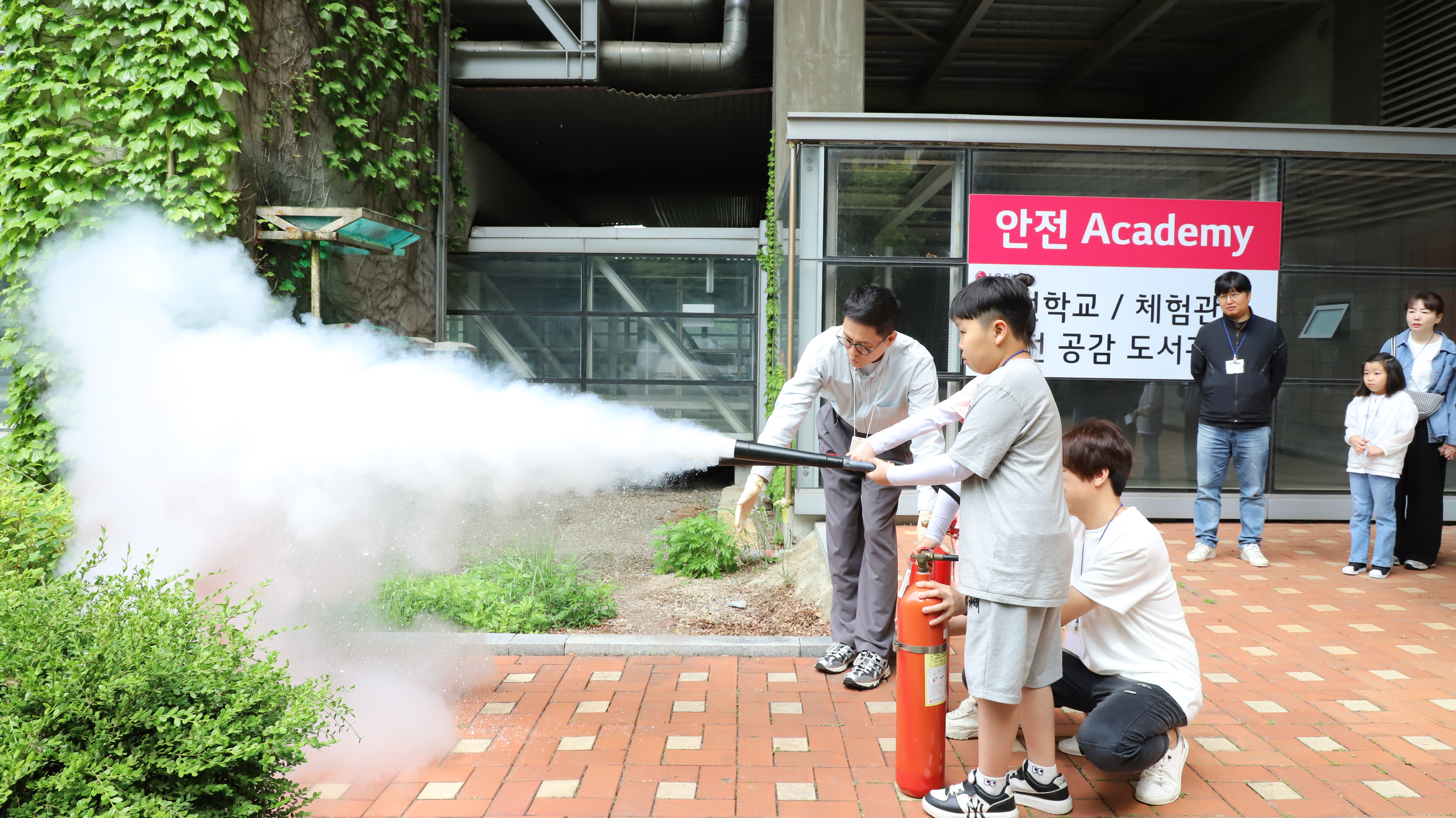 소화기 사용법은 글로 여러 번 배워도 막상 위급한 상황이 닥치면 빠르게 활용하기가 쉽지 않은데요. 어린이들은 실제상황에서도 당황하지 않고 대응할 수 있도록 손에 소화기를 쥐고 진지한 모습으로 체험에 임했습니다.