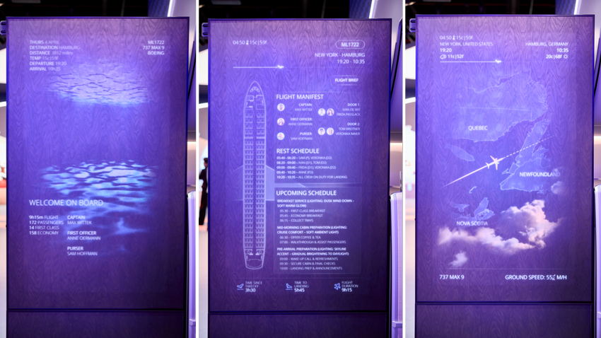 승객은 필요한 정보를 직관적으로 한눈에 확인할 수 있어 편리하고 승무원은 인력이 꼭 필요한 업무에 집중할 수 있어 효율을 극대화할 수 있으며, 인테리어 측면에서도 항공사 브랜드 정체성과 완벽히 어우러지는 디자인으로 미적 가치가 높죠.