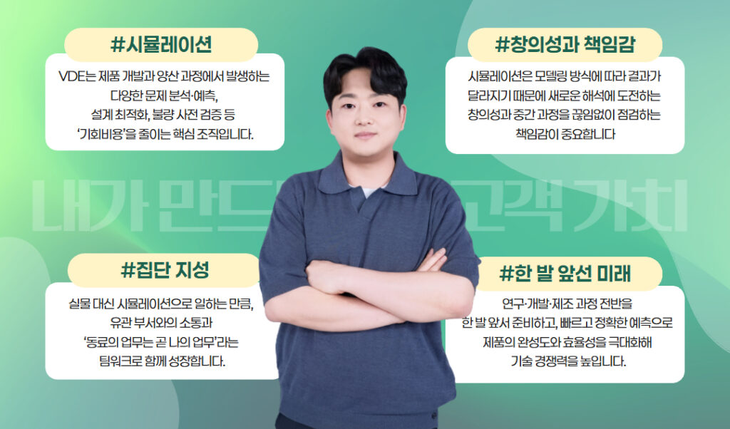 특히, AI와 결합이 고도화되면 시뮬레이션은 단순한 검증 도구를 넘어 실시간 의사결정을 이끄는 핵심 플랫폼으로 진화할 것이고, VDE 담당자의 역할도 데이터 해석자에서 벗어나, 전략을 설계하고 방향을 제시하는 핵심적인 역할로 더욱 중요해질 전망입니다. 앞으로는 단순한 시뮬레이션을 넘어, 미래 기술 제품 반영에 있어 방향성을 제시하고, 기술 개발 전략을 제공함으로써 AX 시대를 선도하는 ‘미래형 설계 조직’으로 자리매김하는 것이 목표입니다.