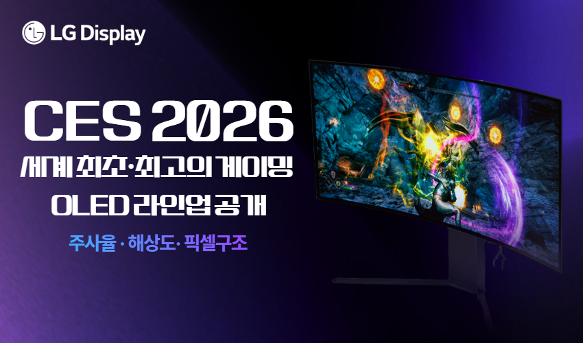 LG디스플레이는 CES 2026에서 세계 최초·최고 사양의 압도적 성능을 갖춘 게이밍 OLED 라인업을 대거 선보인다. 먼저 현존하는 게이밍 OLED 패널 중 가장 빠른 주사율 720Hz를 구현하는 ‘27인치 게이밍 OLED 패널’은 0.02ms 응답속도를 달성하며 이전 프레임의 잔상이 남거나 경계가 뿌옇게 번지는 현상이 전혀 발생하지 않는다. 이날 함께 공개되는 세계 최초의 ‘39인치 5K2K 게이밍 OLED 패널’은 초고화질에 21:9 비율의 커브드 제품으로 최상의 몰입감을 제공한다. 또한 ‘27인치 UHD OLED 패널’은 빛의 삼원색인 RGB 서브픽셀을 나란히 배열한 구조인 RGB 스트라이프 구조를 유지하면서 240HZ 주사율 구현을 세계 최초로 성공했다. LG디스플레이는 대형 OLED 신기술인 ‘프라이머리 RGB 탠덤(Primary RGB Tandem) 2.0’을 2026년에 출시되는 모든 게이밍 OLED 패널에 적용하며 OLED 모니터 시장을 본격적으로 확대해 나갈 계획이다.