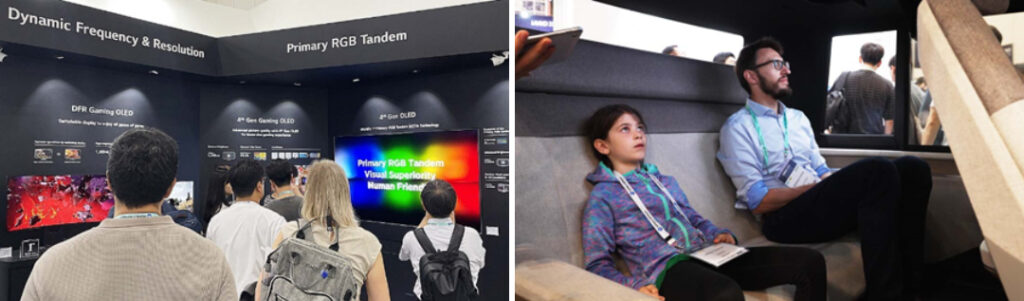The booth also showcased advanced mobility solutions for the Software-Defined Vehicle (SDV) era, including the 57-inch Pillar-to-Pillar LCD, 18-inch Slidable OLED, 12-inch Stretchable Display, and the 13-inch Hybrid Tandem OLED-featuring a hybrid two-stack Tandem OLED structure, with blue fluorescence in the lower stack and blue phosphorescence in the upper stack for dramatically improved power efficiency. The variety and performance of these innovations drew strong interest and positive feedback from visitors.