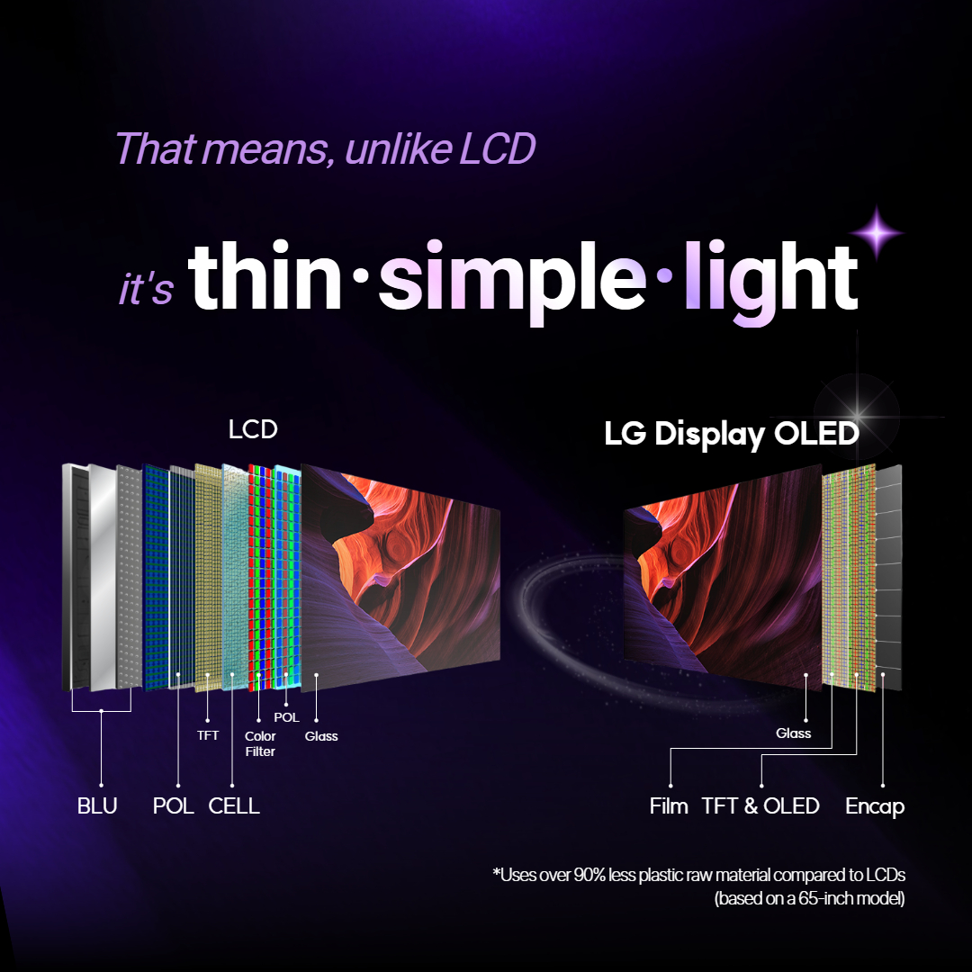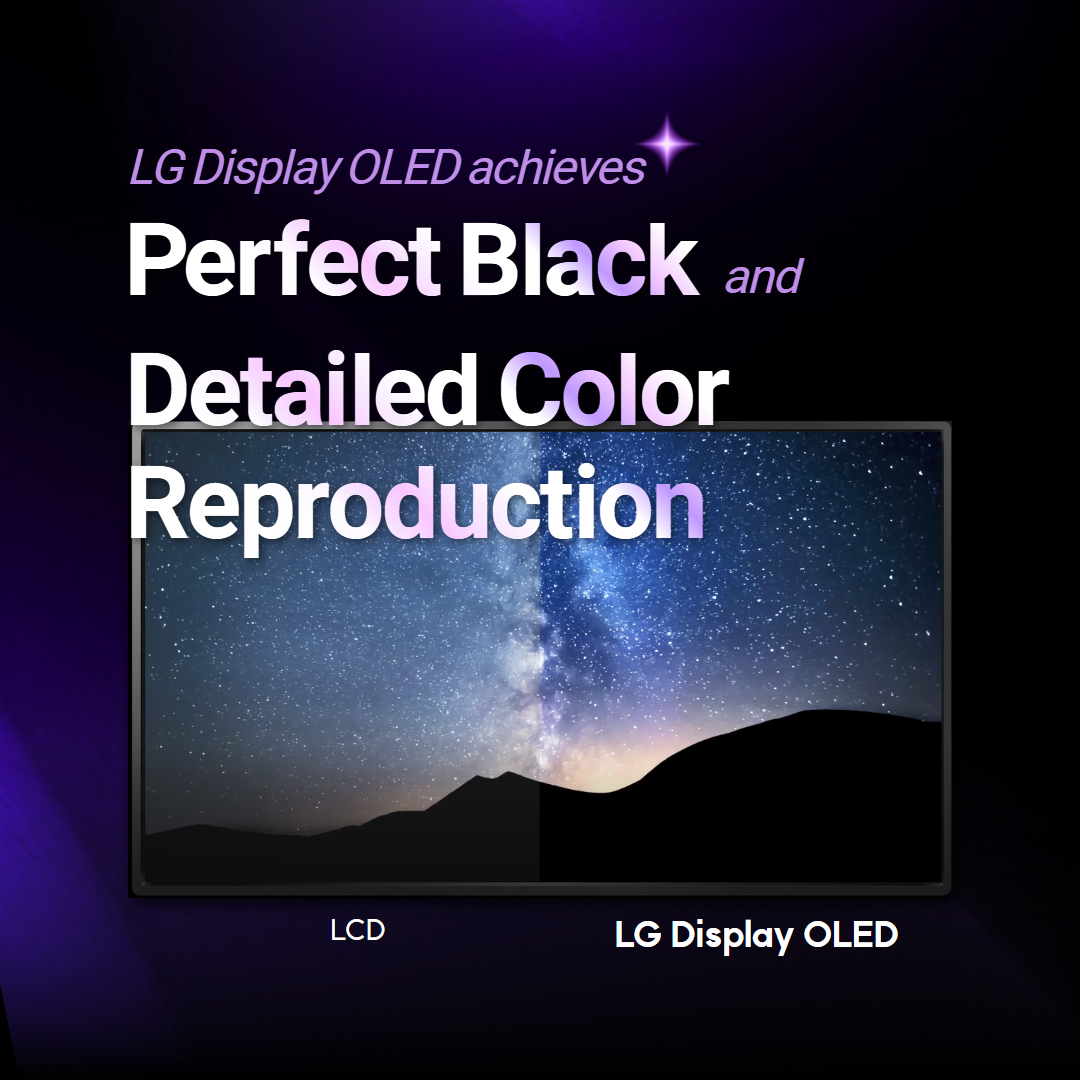 Unlike LCD, which requires a backlight, OLED’s self-emissive structure enables perfect black levels and precise color reproduction.