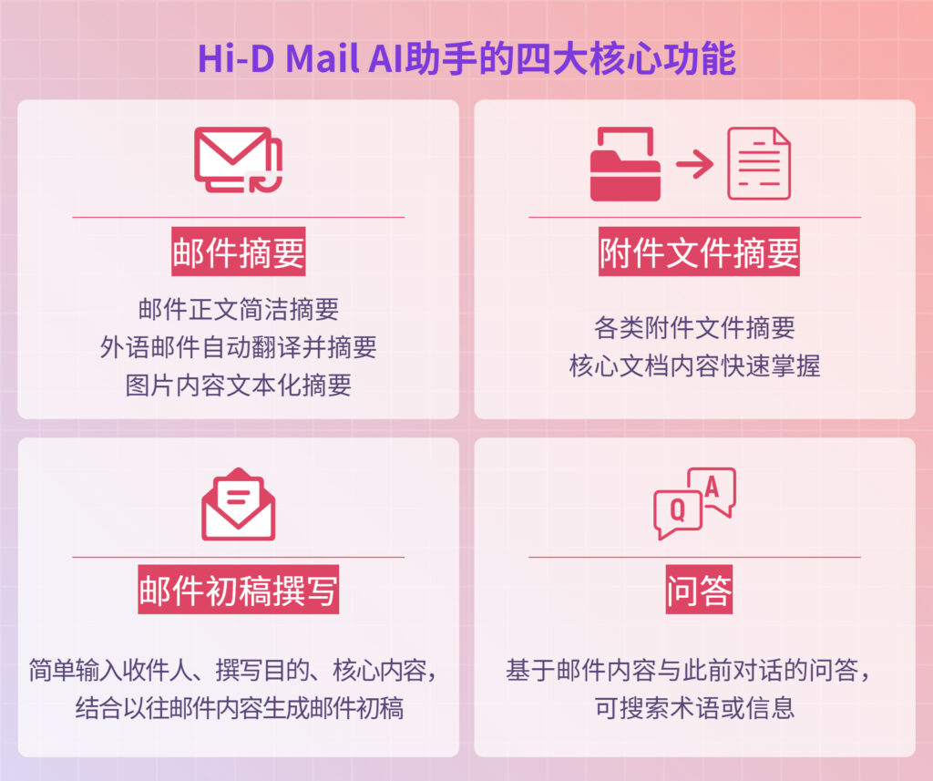 Hi-D Mail AI助手让员工的邮件工作更加便捷。事实上,该助手能解决大家处理邮件时不经意间耗费时间和精力的问题,因而收获了许多积极反馈。